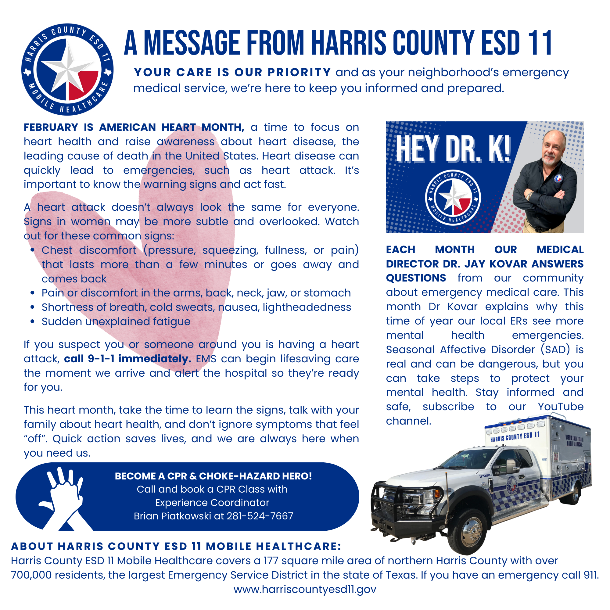 Harris County ESD 11 is more than just an emergency response provider — we are a steadfast partner in the health, safety, and wellbeing of the people we proudly serve.