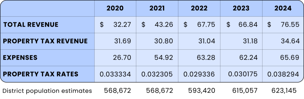 The tables below summarize the District’s financial position for the most recently completed fiscal year (January 1, 2024 – December 31, 2024).